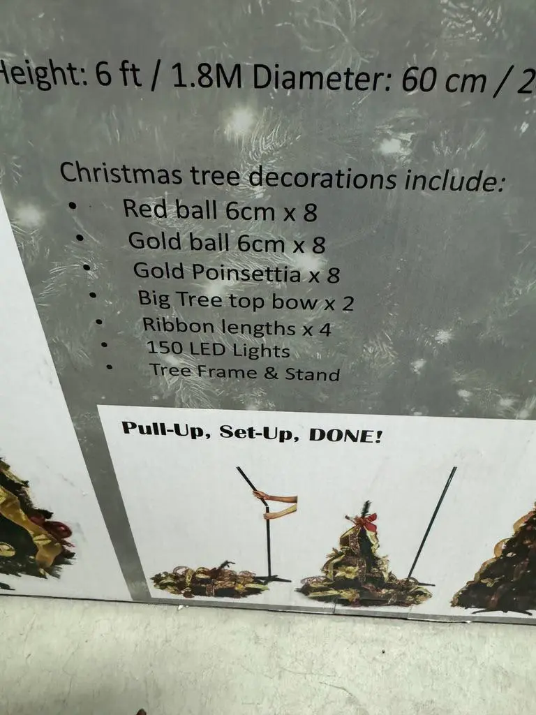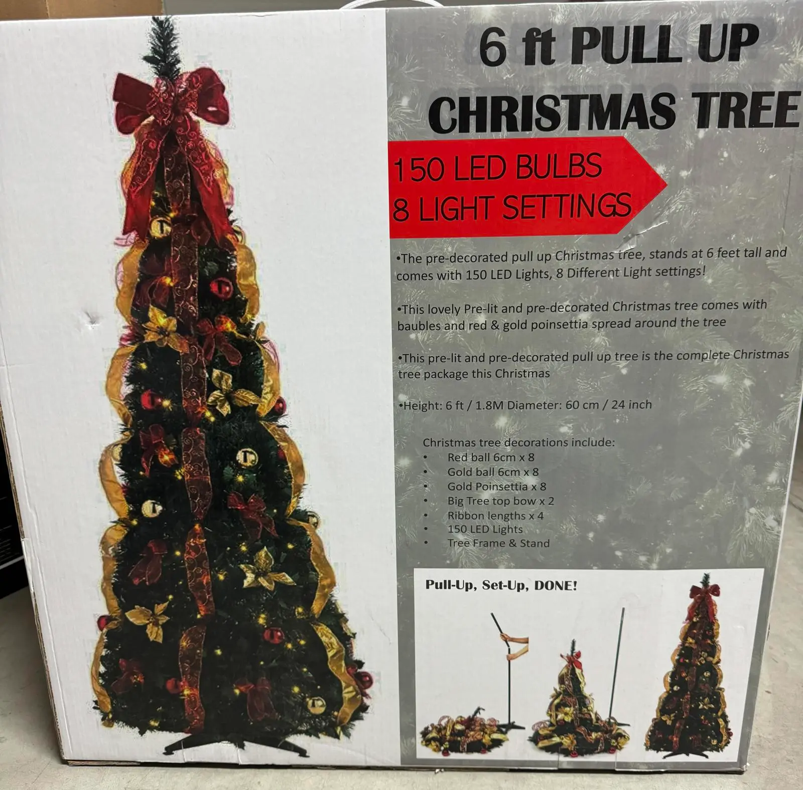 Thomas Kinkade Pre Lit Pull Up Christmas Tree Decorated 6ft pull-up Christmas tree from the Bradford Exchange. Featuring beautiful decorations by Thomas Kinkade, this tree is perfect for any holiday occasion. Its unique design allows for easy setup and storage, making it a convenient choice for any home.