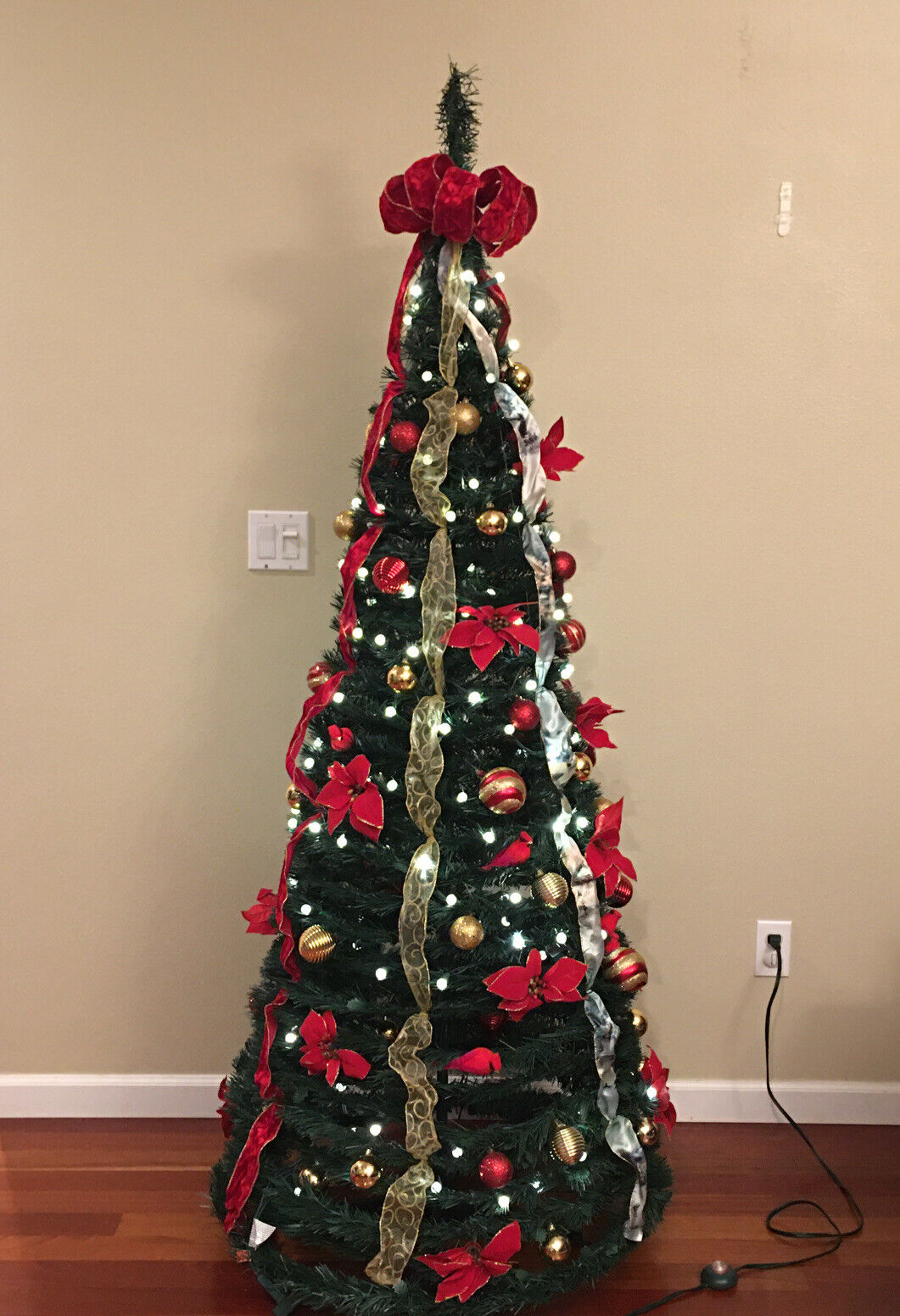 Very happy I purchased this! So so happy with this pop up tree! We plan on adding some of our own ornaments as well, I just haven’t gotten the chance to get them out of storage yet. But I think it looks very nice right out of the box!